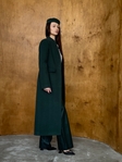 Пальто Elora — елегантне максі пальто з щільної напіввовняної тканини на підкладці. Модель має чіткий силует з легким акцентом на талії, що формує витончену посадку по фігурі. Глибокий зелений колір виглядає стримано та благородно, а класичний крій робить пальто універсальним для щоденних і більш зібраних образів. Ззаду передбачена шлиця, яка додає комфорту під час руху та красиво тримає форму довгого виробу. Ідеальний варіант на весняно-осінній сезон.