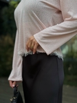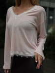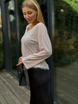 Легкий лонгслів Alba Pink з делікатним мереживом по вирізу та по низу виробу. М’яка еластична тканина комфортно сідає по фігурі, підкреслюючи силует. Ідеальний як самостійний акцент або під жакет.