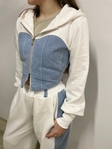 Особливості•Зручний крій•Контрастні джинсові вставки•Кофта на блискавці з капюшоном•Штани вільного крою•Пояс на резинці•Кишені•Поєднання тринитки та деніму•Добре тримає форму•Комфортний у носінні