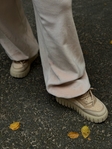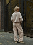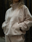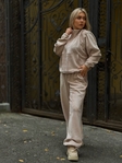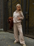 Комфортний велюровий утеплений костюм у бежевому кольорі — ідеальний варіант для щоденних образів. Верх із коміром на блискавці має регулювання по низу завдяки затяжці. Штани вільного крою також оснащені затяжками внизу, що дозволяє змінювати силует. М’який, приємний до тіла матеріал забезпечує комфорт упродовж усього дня.