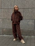 Костюм Velora — комфортний на утепленні oversize-сет для щоденного носіння. М’який, приємний до тіла матеріал добре тримає форму та забезпечує максимальний комфорт у русі.Верх має регульовану затяжку понизу, що дозволяє змінювати посадку та силует. Штани також оснащені затяжками внизу — можна носити як прямими або зібраними. Модель підійде для міських образів, подорожей та повсякденного стилю.