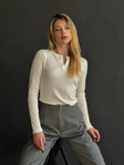 Лаконічний базовий лонгслів Noma з м’якої тканини у рубчик. Комфортно сідає по фігурі та ідеально підходить як база під жакети, костюми та щоденні образи.