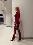 Scarlet — облягаючий комбінезон у кольорі бордо з ефектною посадкою по фігурі. М’який трикотаж у рубчик делікатно тягнеться, підкреслює силует і забезпечує комфорт у русі. Глибока блискавка спереду дозволяє регулювати виріз, а пояс із металевою пряжкою акцентує талію та додає завершеності образу. Ідеальний варіант як для повсякденних образів, так і для стильних виходів.