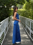 Сатинова максі сукня з тонкими бретелями та відкритою спиною. Лягає по фігурі, красиво підкреслює силует.Особливості:– сатинова тканина– тонкі бретелі– шнурівка на спині– драпірування– довжина максі