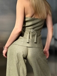 Топ-жилетка Lia — акцентна модель з шерстяної тканини з віскозною підкладкою, що красиво тримає форму та створює витончений силует.Фігурна лінія верху підкреслює зону декольте, а пояс на спинці дозволяє регулювати посадку по талії.
